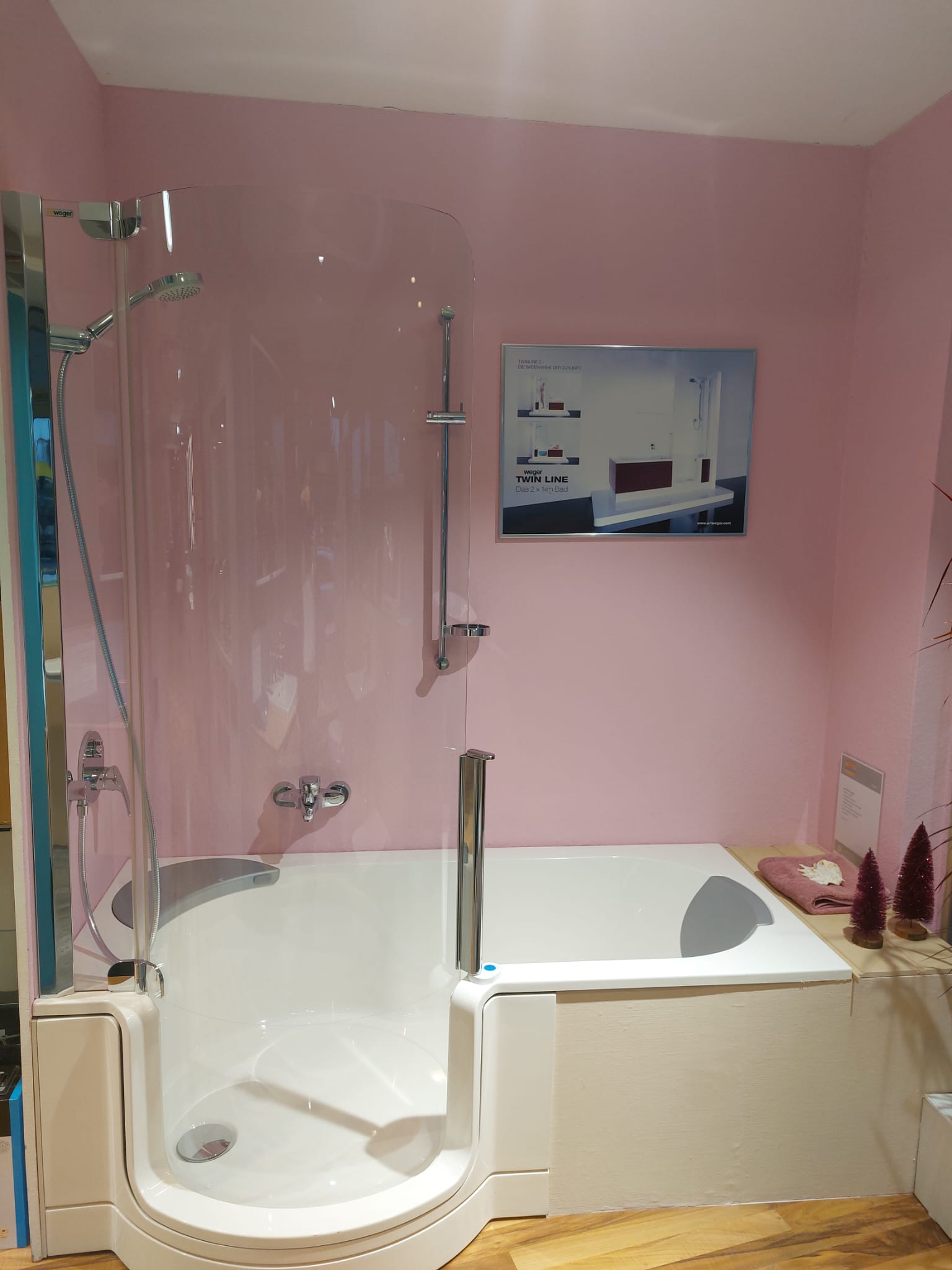 Artweger Twinline 1 Badewanne 170 x 75 cm Duschtüre, Profil Metall Hochglanz mit Nackenpolster und Sitzbank