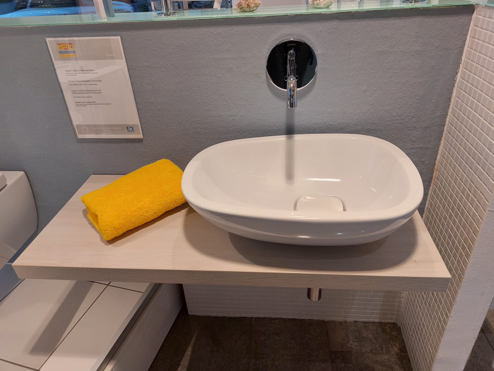 Burgbad Konsolenplatte Farbe Eiche Dekor Merino 100 cm x 41 cm Keramag Citterio Aufsatzwaschtisch 56 cm x 40 cm Ohne Armatur
